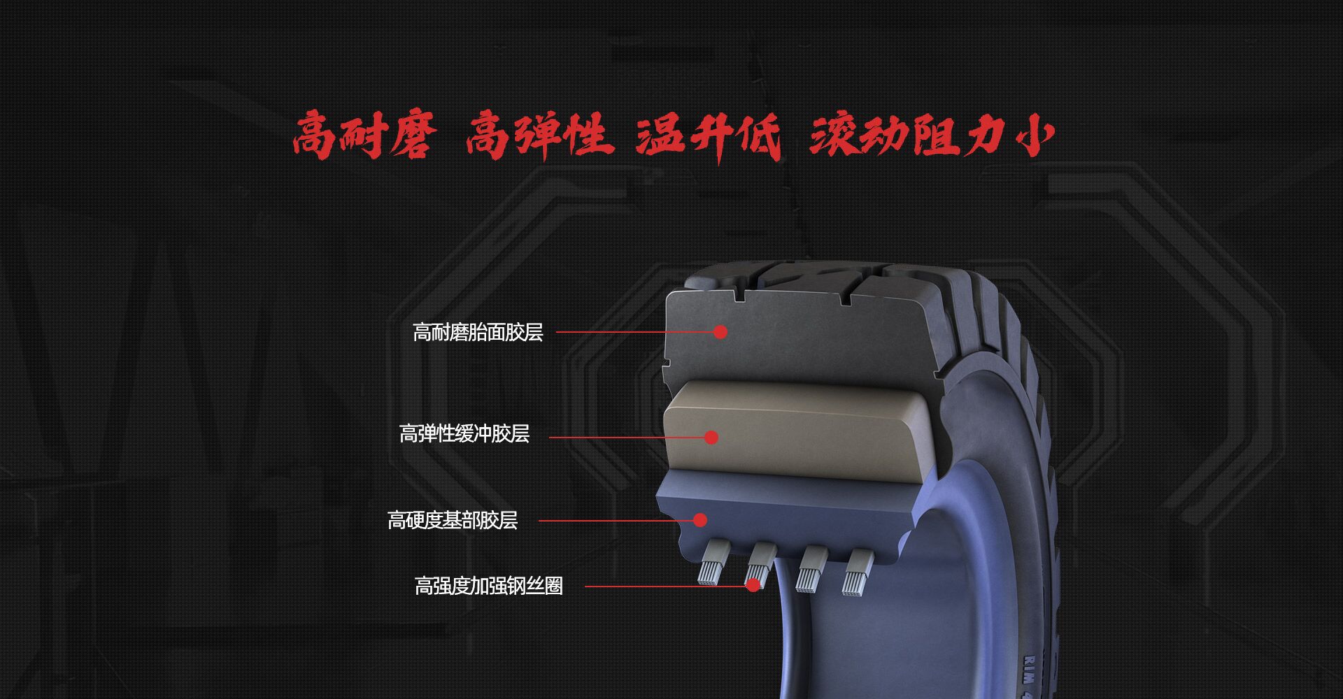 實心輪胎主要適用于地面復雜惡劣工況下的叉車、拖車、裝載機、軍用車輛等機械車輛的配備,廣泛應用 于鋼鐵廠、礦山、建筑工程、港口、物流、廢金屬加工廠等領域。 實心輪胎胎體為全橡膠構(gòu)成,最大限度地保證了輪胎的耐刺穿性,從根本上消除了工業(yè)車輛在承載運行過 程中及在惡劣的作業(yè)環(huán)境中的輪胎刺穿隱患。實心輪胎的負荷—形變量小、運行穩(wěn)定性好,因其耐刺耐撕、耐 高溫、耐腐蝕、耐磨損,無需充氣,避免了頻繁補胎換胎的繁重勞動,可提高車輛的使用率和工作效率,在低 速、高效運行車輛
